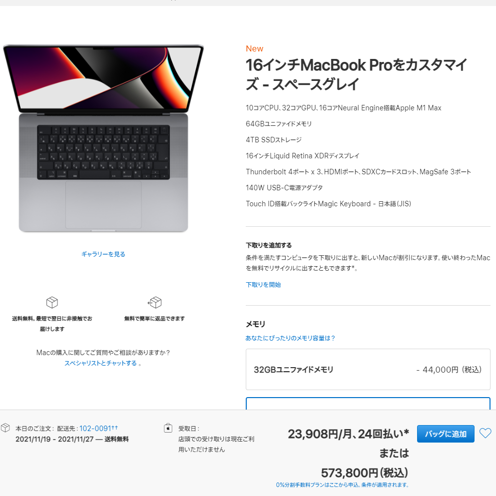 1080pや4Kで8bitまでしか扱わないのであれば、32GB ユニファイドメモリにし、2TB SSDストレージにするといいでしょう。